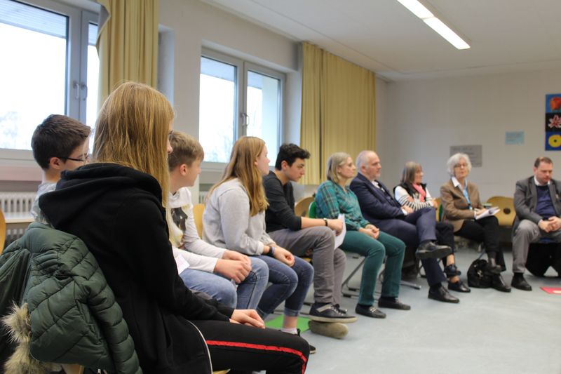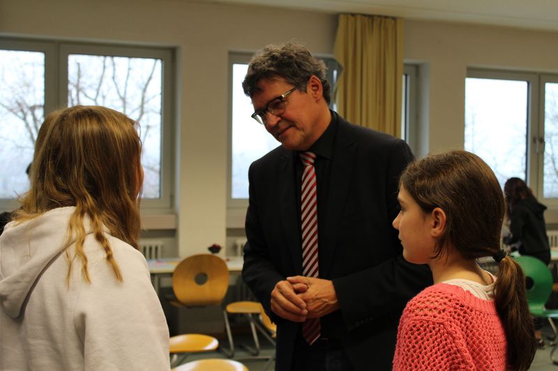 „Wann wird unsere Schule überhaupt vollkommen digital ausgestattet?“ lautete eine Frage der Schüler*innen der 7. Klasse unserer Schule. Gerichtet war sie an den Regionalverbandsdirektor Peter Gillo sowie den Sulzbacher Bürgermeister Michael Adam im Rahmen der UNICEF-Aktion "Kids takeover". Beide erklärten sich bereit, den Schüler*innen zum "Tag der Kinderrechte" Rede und Antwort zu stehen. Die Siebtklässler haben sich schon seit längerem zusammen mit Lehrerin Birgit Neises auf diese Diskussionsrunde vorbereitet, Fragen gab es unter anderem zur Müllsituation auf den Sulzbacher Spielplätzen, zum Skatepark oder eben auch zur Ausstattung unserer Schule bezüglich Schalosien für die Klassenräume, digitaler Technik oder Kunstrasen für den Sportplatz. Circa eine Stunde stellten die Schüler*innen in der von Marc-Luca Trampert (7a) moderierten Interviewrunde kritische Nachfragen an die anwesenden Gäste, zu denen auch der stv. Schulleiter Klaus Damde, UNICEF-Repräsentantin und pensionierte THG-Lehrerin Christiane Siewert sowie Gudrun Nau und Ingrid von Tippelskirch von der UNICEF-Arbeitsgruppe Saarbrücken gehörten. Neben kritischen Worten bekamen Rathauschef und Regionalverbandsdirektor aber auch Lob von den Kindern zu hören.