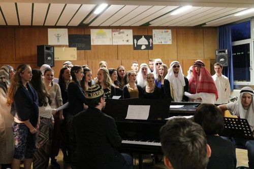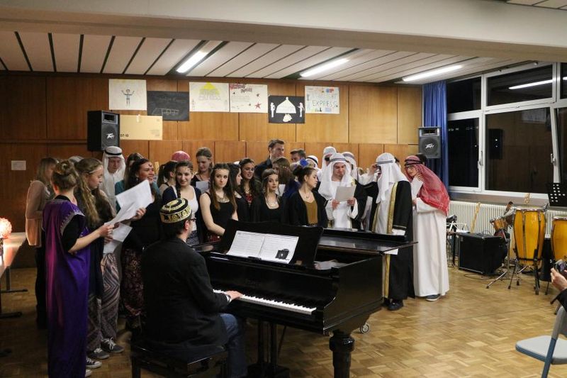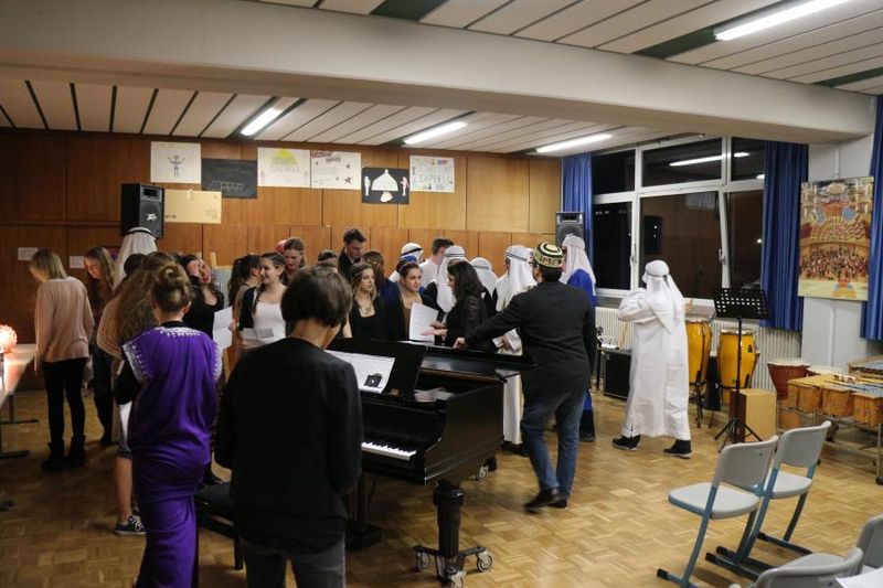 Dem diesjährigen Abimotto „Abu Dhabi" entsprechend waren die Mädchen in farbenprächtige, orientalisch anmutende Gewänder gekleidet, die Jungen erinnerten in ihren langen weißen Kaftans und den Turbanen an Wüstenscheichs.